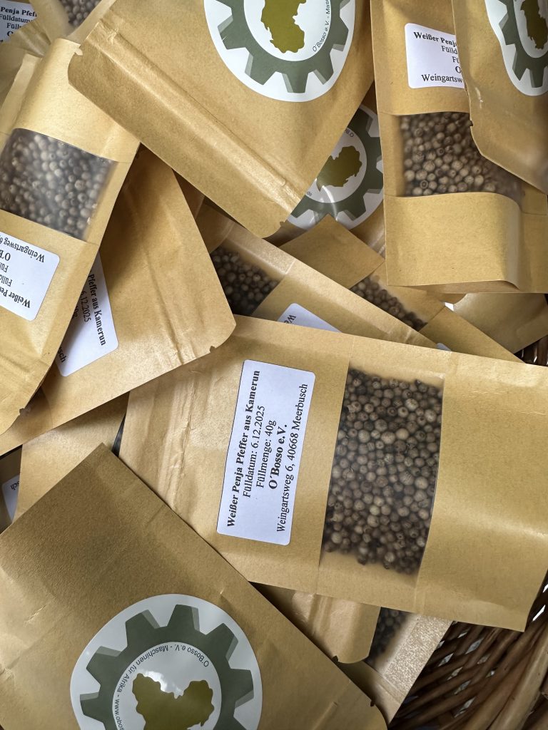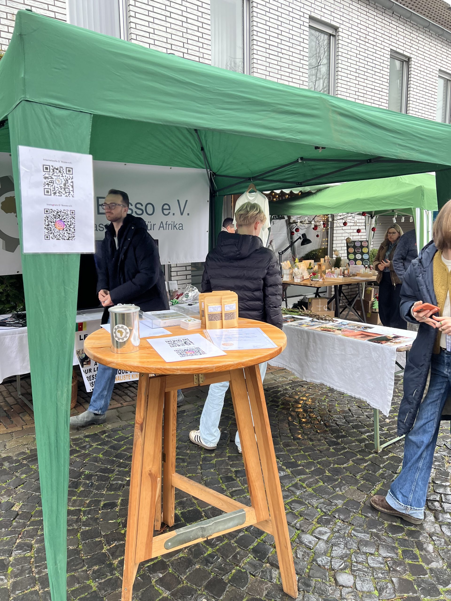 An unserem Stand kamen wir mit vielen interessierten Besucherinnen und Besuchern ins Gespräch und teilten Einblicke in unsere Arbeit rund um nachhaltiges Bauen und Bildung in Kamerun. Zusätzlich haben wir Penja-Pfeffer aus Kamerun verkauft, um weitere Spenden für zukünftige Projekte zu sammeln und gleichzeitig ein Stück Kamerun nach Meerbusch zu bringen.